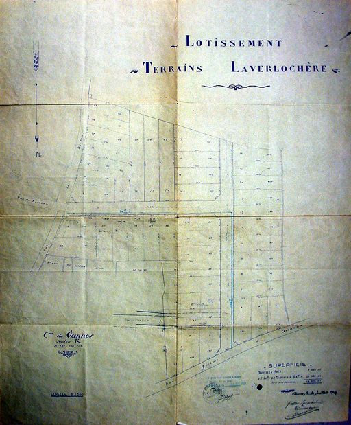 Plan général du lotissement Laverlochère, 1929. AM Vannes 1O221.Immatriculation