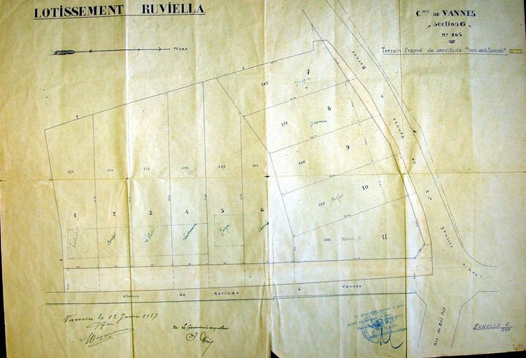 Plan parcellaire du lotissement Ruviella, 1937. AM Vannes 1O221.Immatriculation