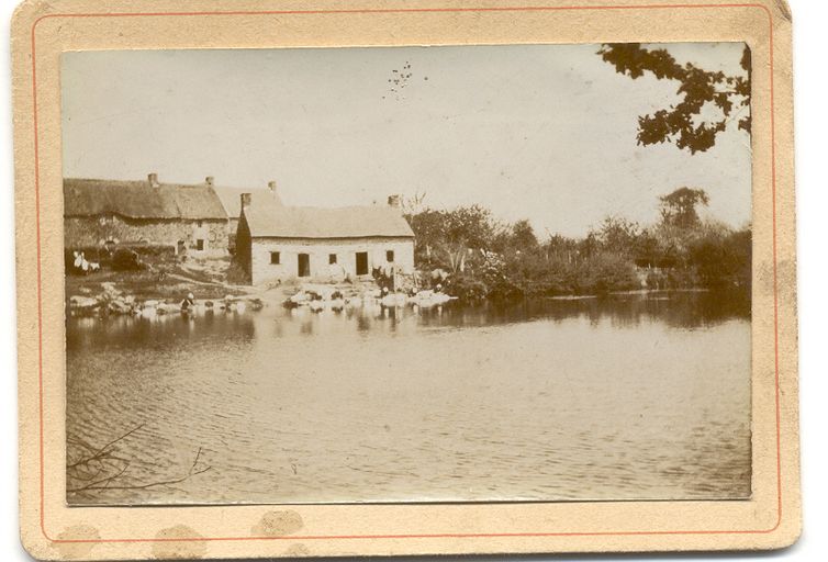 Vue ancienne de l'étang avec la laverie et la ferme parcelles 452 et 452 bis cadastre de 1844. Photographie. Fonds privé Taslé.Immatriculation