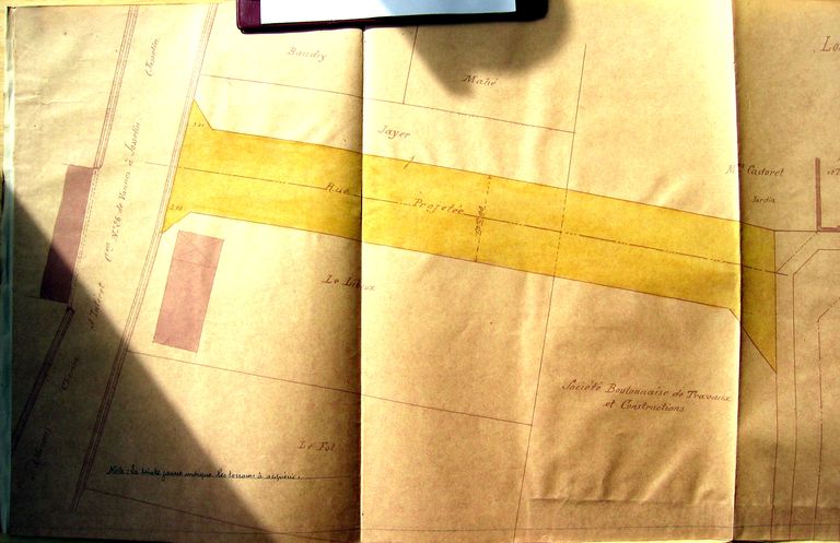 Plan de la rue nord du lotissement de Poignant-gare, et projet d'ouverture d'une rue vers la route de Josselin, par Thiévard, 1931. AD Morbihan 3O 2182.Immatriculation