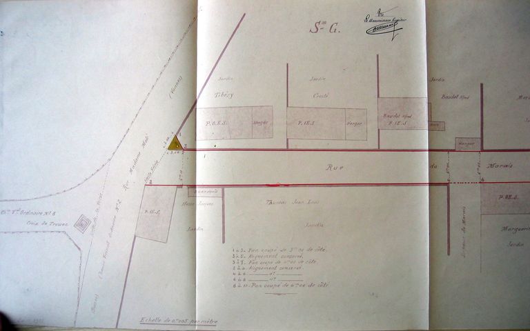 Projet de classement de la rue du marais : plan signé de Thiévard, 14 oct 1931 : partie ouest. AD Morbihan 3O 2182.Immatriculation