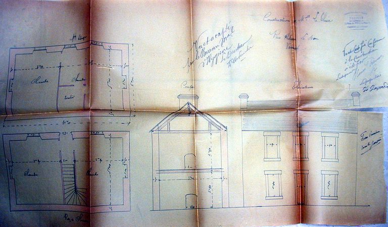 Plan et élévation de la maison Le Thiec par Prévost, le 18 novembre 1911. AM Vannes 5 I 162.Immatriculation