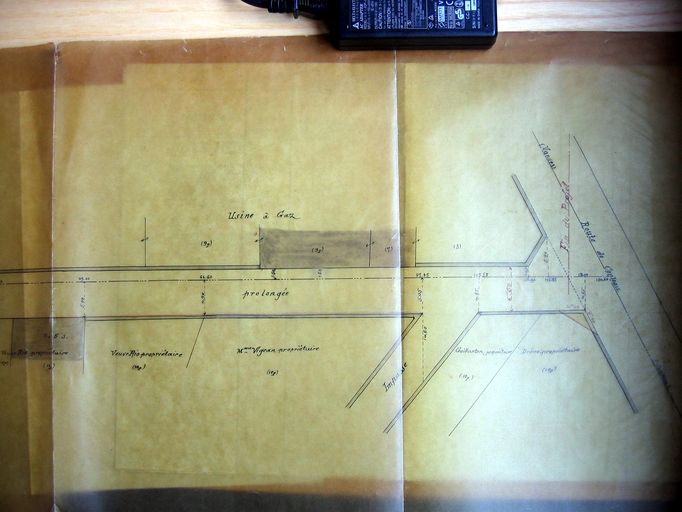 Projet de prolongement de la rue Philippe Lebon, de la rue Ampère à la route de Conleau. Plan dressé par Rousseau, partie nord, 2 février 1925. AD Morbihan 3O 2183.Immatriculation