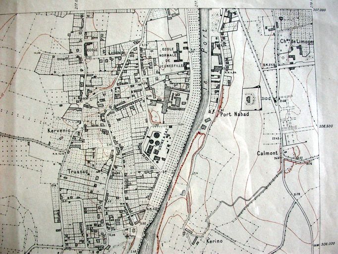 Plan de la commune par Gay, Ministère de la Reconstruction, 1952. AM Vannes 9Fi.Immatriculation