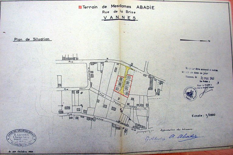Plan de situation du lotissement Abadie par Lunven, 1962. AM Vannes 1O221.Immatriculation