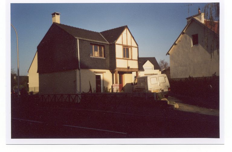 Vue d'une maison (parcelle 463) de la rue à proximité du supermarché, aujjourd'hui détruite.Immatriculation