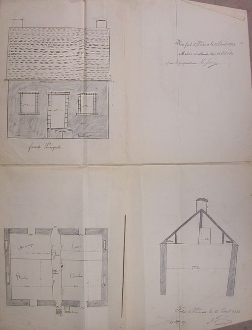 Plan de la maison Le Garnec, 13 avril 1925, non attribué dans la rue. AM Vannes 5I162.Immatriculation