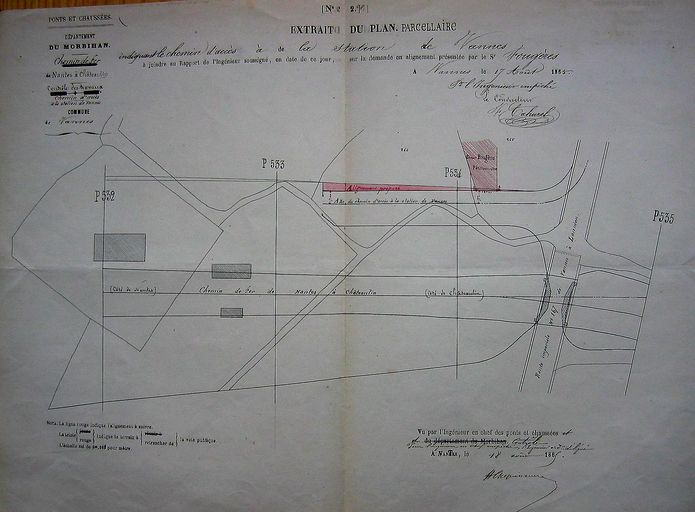 Plan d'alignement de la maison Fougère, août 1865. AD 56 S 1552.Immatriculation