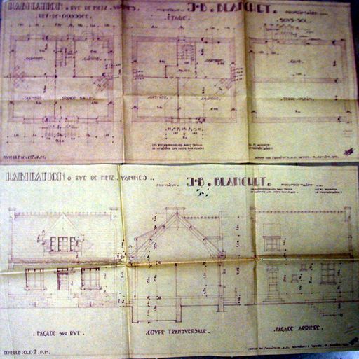Plans de la maison Blanchet par Perrin, 1933. AM Vannes 5I162.Immatriculation