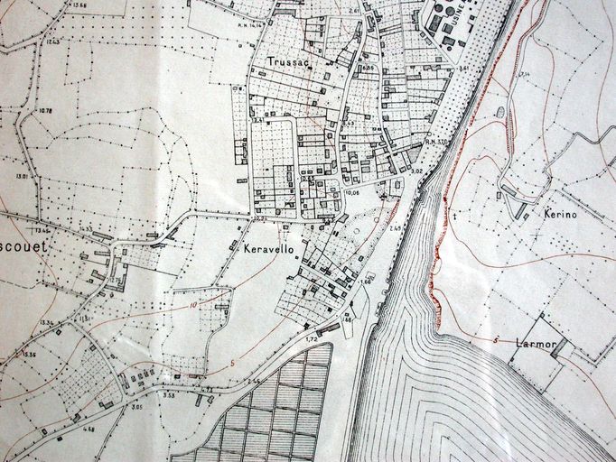 Plan de la commune par Gay, Ministère de la Reconstruction, 1952. AD Morbihan 1 Fi 381/4.Immatriculation