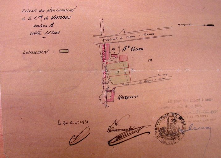 Vue générale : plan de situation du lotissement Robert, 1931. AM Vannes 1O221.Immatriculation