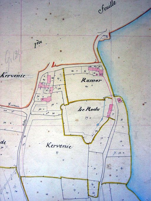 Plan cadastral 1844, section G1. AD Morbihan 3 P 297/13.Immatriculation