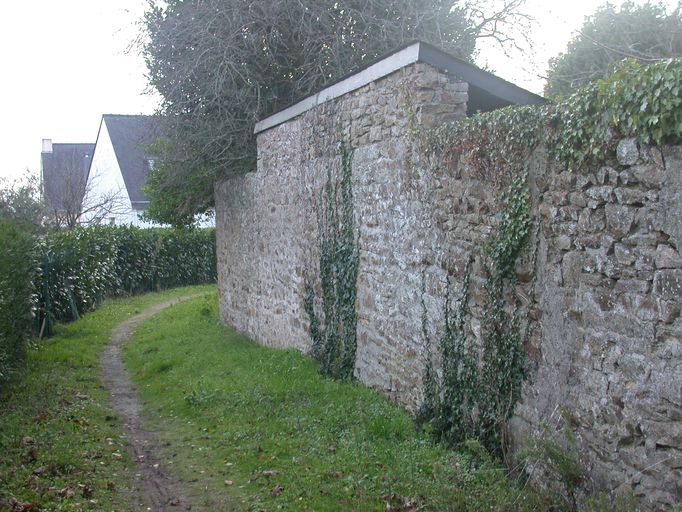 Vue du mur d'enclos côté est et d'un vestige contre ce mur.Immatriculation