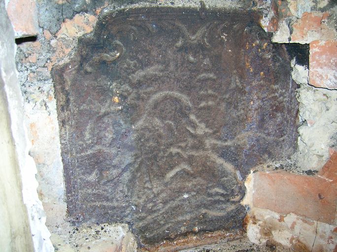 1er étage, grand salon, plaque de cheminée : le loup et la cigogne.Immatriculation