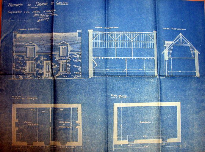 Plans, élévation et coupes de la maison Le Gallèze par A. Charron, 1928. AM Vannes 5 I 162.Immatriculation
