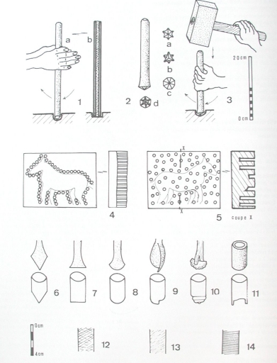 Dans : "L'outillage traditionnel du tailleur de pierre de l'Antiquité à nos jours" /. Jean-Claude Bessac, Paris : Edition du CNRS, 1993, p 158.Dessin.
