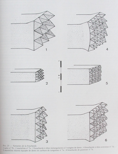 Dans : "L'outillage traditionnel du tailleur de pierre de l'Antiquité à nos jours" /. Jean-Claude Bessac, Paris : Edition du CNRS, 1993, p 81.Dessin.