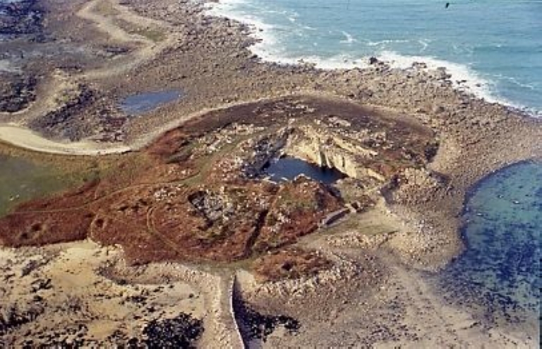 Vue d'avion de la grande carrière de l'île Agathon (UTL Lannion)Immatriculation