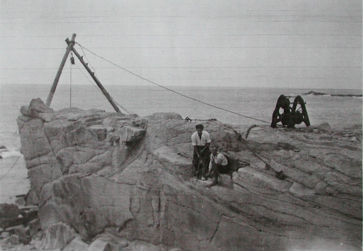 Le dispositif de la chèvre et du treuil pour soulever les pierres une fois élinguées, vers 1950 (collection particulière)Immatriculation