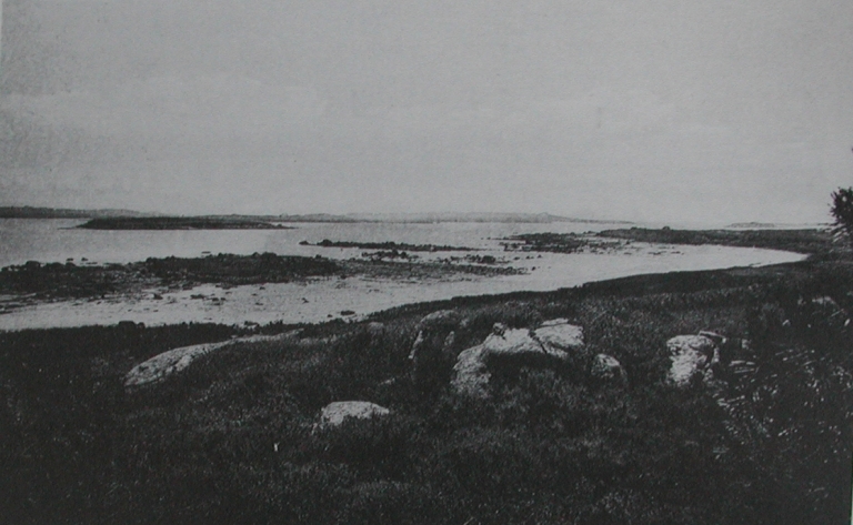 Vue de Landrellec au début du 20ème siècle, sur Poullou, Enez Erc'h et Enez Jezequel. Sur Enez Erc'h se tenait une sècherie de poisson (collection particulière)Immatriculation