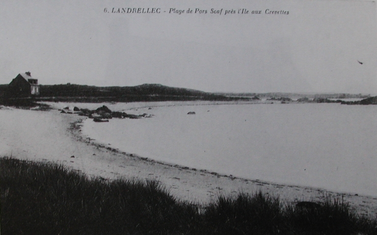 Porz Scaf ou port des Chalands, lié à l'activité des carrières de Landrelle. Au 1er plan : Roc'h Panenno (collection particulière)Immatriculation