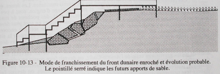 Dunes de Pors Gwen : mode de franchissement du front dunaire proposé par J.P. Pinot (SMVM Lannion, 1993)Immatriculation