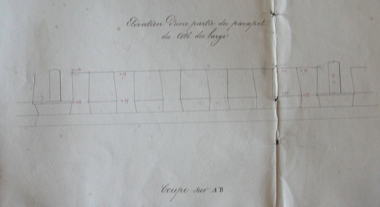 Plan détail : élévation du parapet du côté du large : jetée du Linquin, 1852 (AD 22)Immatriculation