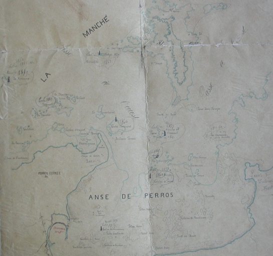 Plan de la rade de Perros-Guirec par Beautemps-Beaupré, carte N° 974, édition 1865 (AD 22)Immatriculation