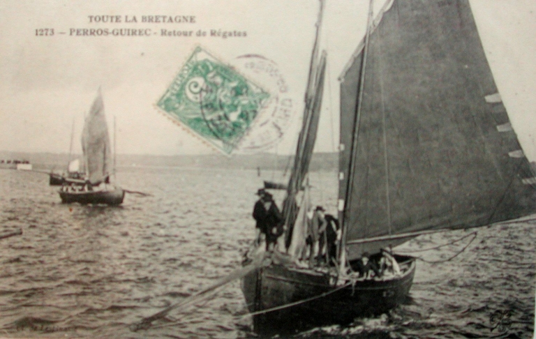 Carte postale : retour de régates au début du 20ème siècle d'une chaloupe gréée en flambart, 1907 (collection particulière)Immatriculation