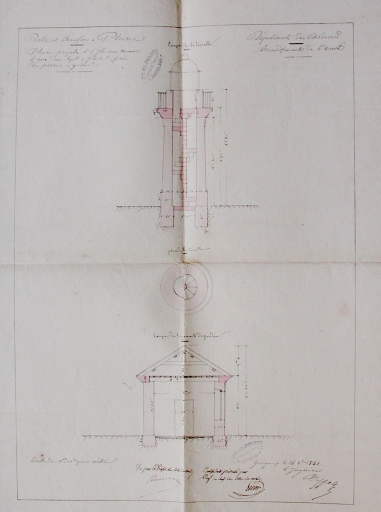 Projet de phare à Mean Ruz : plan coupe de la tourelle et logement du gardien, 1881 (AD 22)Immatriculation