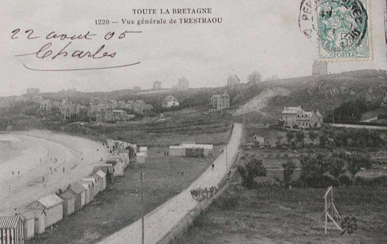 Le front de mer de Trestraou en 1905 : début de la construction des premières villas (carte postale, AD 22)Immatriculation