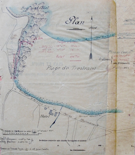 Plan : projet d'aménagement d'un sentier et de construction d'une cale débarcadère à la pointe ouest de Trestraou en 1896 (AD 22)Immatriculation