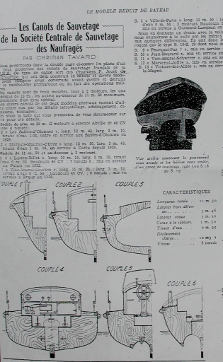 Détails : plan des couples au 1/50°des canots de sauvetage du type S 18 et S 19 dans la revue Le modèle réduit, 1951 (collection particulière)Immatriculation