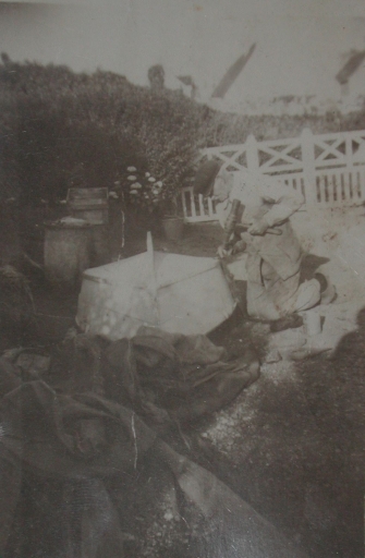 Le charpentier et maître calfat François Briand en train de calfater le bordé de bouchain d'un canot avec son maillet à calfat (collection particulière)Immatriculation