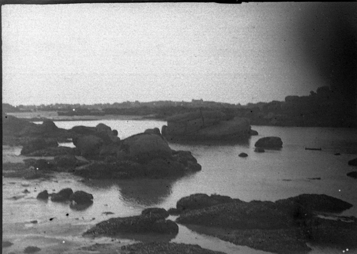 L'ancien rocher Garreg Roc'h Is, détruit aujourd'hui, dans le port de Ploumanac'h vers 1920 (AD 22)Immatriculation