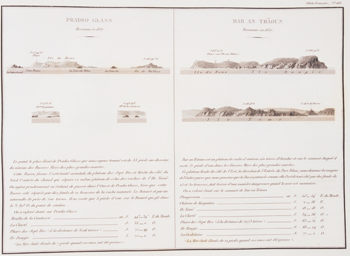 Relevé des Sept-Îles par Beautemps-Beaupré, Bono et Rouzic, 1837 : le Pilote Français (collection particulière)Immatriculation