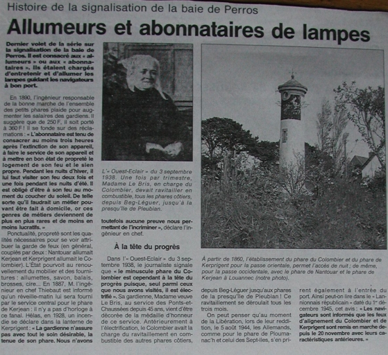 Histoire de la signalisation de Perros-Guirec : allumeurs et abonnatiares des lampes (Ouest-France 2001, Françoise Racine)Immatriculation