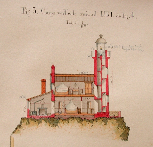 Vue en coupe du phare de Ploumanac'h, 1891 (AD 22)Immatriculation
