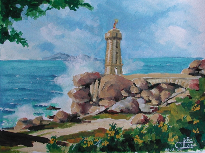 Réprésentation aquarellée du phare de Mean Ruz aujourd'hui (Loïc Ollivier)Immatriculation