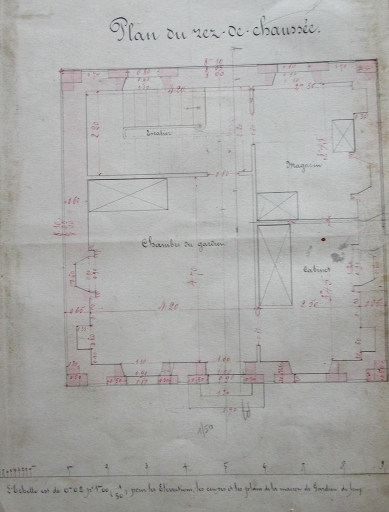 Plan du rez-de-chaussée, à l'échelle 1/50ème, 1898 (AD 22)Immatriculation