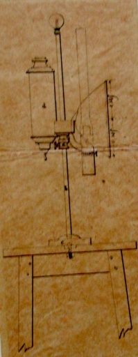 Dessin d'un appareil d'éclairage : réflecteur parabolique ou photophore avec lampe à niveau constant, disposé en 1883 (AD 22)Immatriculation
