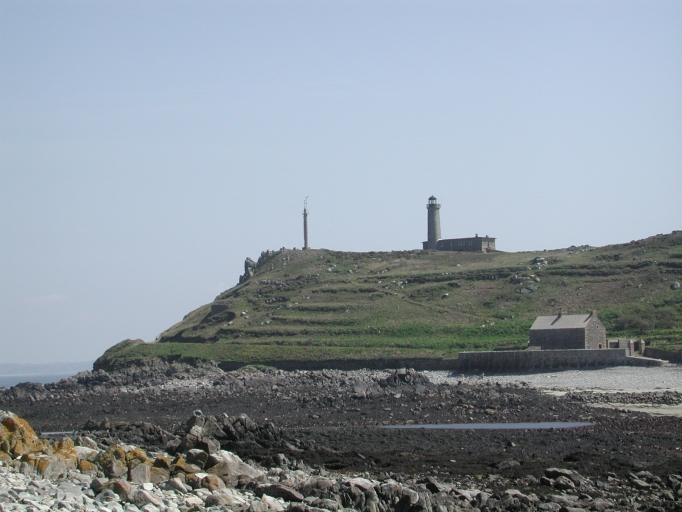 Le site du phare et de la caserne, vue de l'Île Plate : remarquer les anciens terrains cultivés en terrasseImmatriculation
