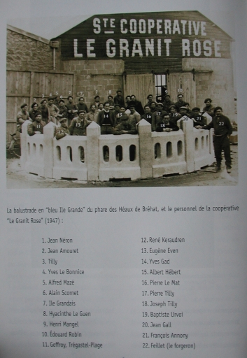 La balustrade du phare des Héaux de Bréhat, réalisée par les ouvriers de la Coopérative 'Le Granit Rose en 1947 (UTL lannion)Immatriculation