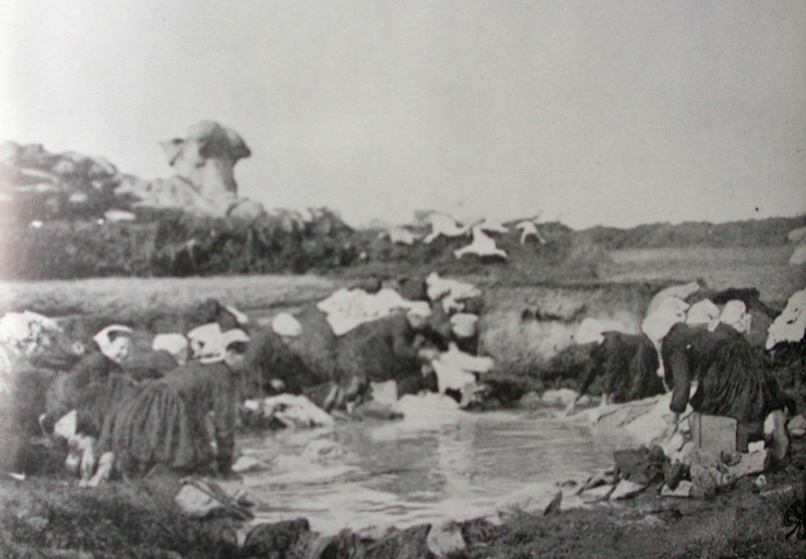 Ancien lavoir de Toul Bihan à Saint-Guirec, sous le rocher du Bélier, au début du 20ème siècle (collection particulière)Immatriculation