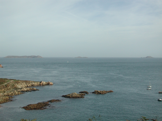 Au sud, le Rocher aux Mulets (Roc'h a Zehoudi), dans le bout, la roche le long de terre : Roc'h an Dar (la Roche du Pou de Mer) et devant la crique du Trou de Chaleur (Toull Tommder)Immatriculation