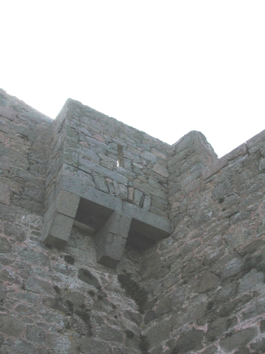 Façade nord : vue de la brétéche flanquant le pont-levis de la redoute, réduit (assemblage des pierres en quinconce)Immatriculation