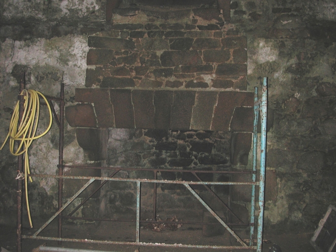 Façade nord intérieure : l'une des deux monumentales cheminées située dans les salles de garde du rdc, en cours de réfectionImmatriculation