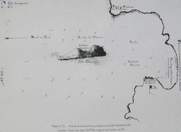 Vue de la rade de Perros-Guirec et de l'île Thomé : rapport de Cornic, an III, 1794-95 (Arch. Nat. Mar.)Immatriculation