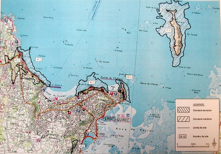 Extrait de la carte des espaces littoraux remarquables : Les falaises de La Clarté, les pointes du Sphinx et du Château, le Bois d'Amour, l'île Thomé (DIREN Bretagne)Immatriculation