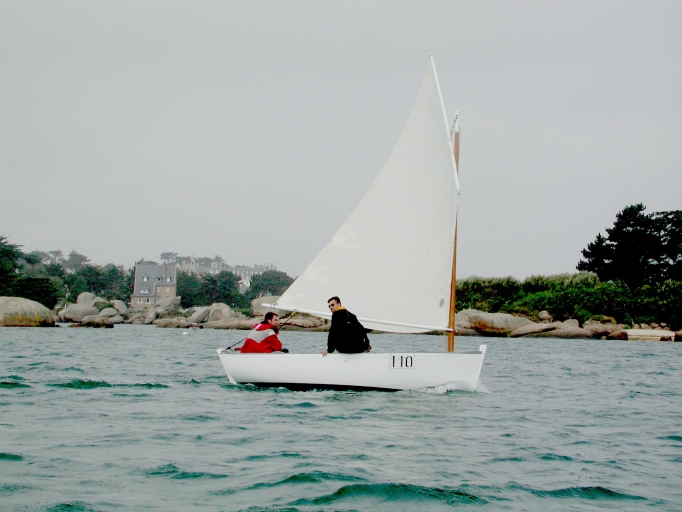 Le Koroï en régates dans la baie de Sainte-Anne avec sa misaine bômée (Trégastel)Immatriculation